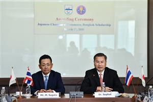 เมื่อวันจันรทร์ที่ 2 มีนาคม 2561 : ดร.สุภัทร จำปาทอง เลขาธิการคณะกรรมการการอุดมศึกษา และ นายมิจิโนบุ ซึงาตะ รองประธานหอการค้าญี่ปุ่น – กรุงเทพฯ และประธานส่วนการศึกษา คณะกรรมการฝ่ายความช่วยเหลือสังคมเจซีซี ร่วมมอบทุนการศึกษาหอการค้าญี่ปุ่น – กรุงเทพฯ ประจำปีการศึกษา 2560 แก่นิสิตนักศึกษาระดับปริญญาตรี จำนวน 20 ทุน(ระยะเวลา 4 ปีการศึกษา) และระดับปริญญาโท จำนวน 5 ทุน(ระยะเวลา 2 ปีการศึกษา)  นักศึกษาของมหาวิทยาลัยได้รับทุนการศึกษา จำนวน 4 ทุน  ณ ห้องประชุมหอการค้าญี่ปุ่น - กรุงเทพฯ อาคารออลซีซั่น เพลส กรุงเทพมหานคร