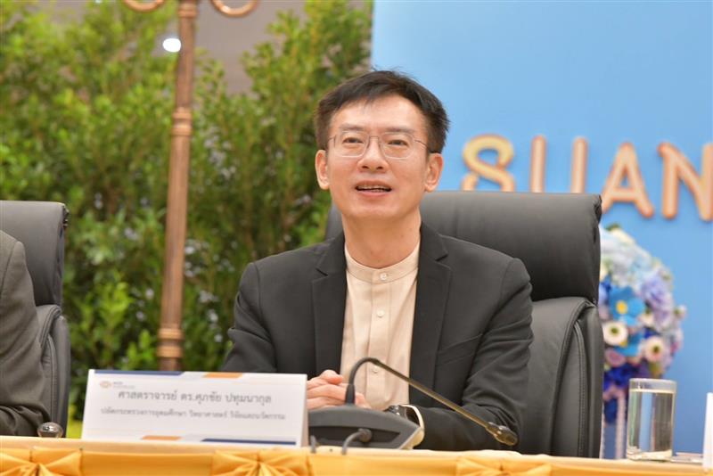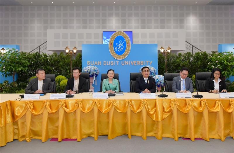 เมื่อวันที่ 17 สิงหาคม นางสาวสุดาวรรณ หวังศุภกิจโกศล รัฐมนตรีว่าการกระทรวงการอุดมศึกษา วิทยาศาสตร์ วิจัยและนวัตกรรม (อว.) พร้อมด้วยนายศุภชัย ปทุมนากุล ปลัดกระทรวง อว. และ ศ.ดร.วิเลิศ ภูริวัชร อธิการบดีจุฬาลงกรณ์มหาวิทยาลัย ในฐานะประธานที่ประชุมอธิการบดีแห่งประเทศไทย (ทปอ.) ผศ.ดร.ปมทอง มาลากุล ณ อยุธยา เลขาธิการ ทปอ. รศ.ดร.ชาลี เจริญลาภนพรัตน์ ผู้จัดการระบบ TCAS69 และ ผช.ดร.ปาริยา ณ นคร ผู้จัดการระบบจัดสอบ TCAS69 แถลงข่าวระบบคัดเลือกกลางบุคคลเข้าศึกษาในสถาบันอุดมศึกษา ปีการศึกษา 2569 TCAS69: Opportunities for All สร้างโอกาสที่เท่าเทียมสำหรับทุกคน ที่ห้องประชุมรักตะกนิษฐ มหาวิทยาลัยสวนดุสิต