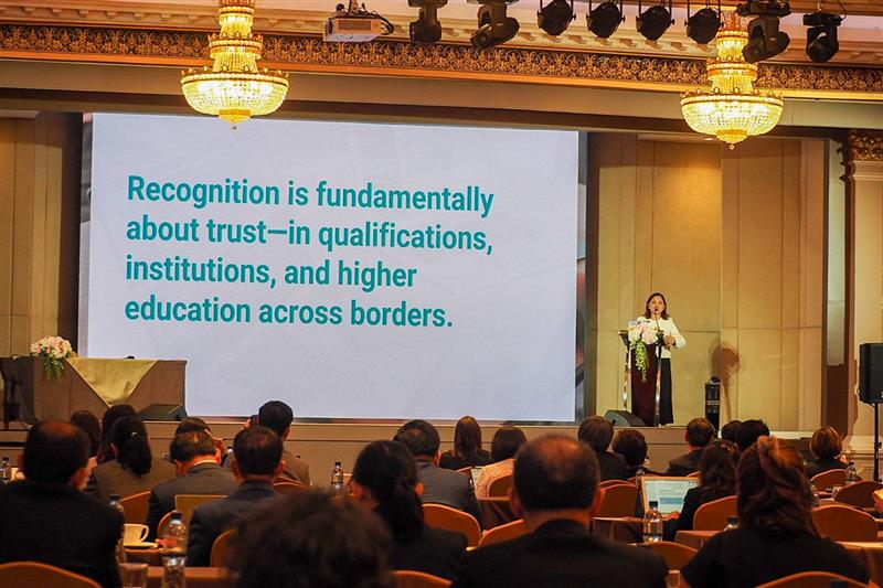 ในโอกาสนี้ ศาสตราจารย์ ดร.ศุภชัย ปทุมนากุล ปลัดกระทรวงการอุดมศึกษา วิทยาศาสตร์ วิจัยและนวัตกรรม (อว.) เป็นประธานเปิดการสัมมนา “สร้างโอกาสการเคลื่อนย้ายในโลกไร้พรมแดน: การเตรียมประเทศไทยสู่การรับรองคุณวุฒิการศึกษาระดับภูมิภาคและระดับโลกของยูเนสโก (Opening Doors for Global Mobility: Preparing Thailand for the Asia-Pacific and Global Conventions on Qualifications Recognition)” มุ่งสร้างความรู้ความเข้าใจในหลักการสำคัญและประโยชน์ของ อนุสัญญาว่าด้วยการรับรองคุณวุฒิระดับอุดมศึกษาของภูมิภาคเอเชียแปซิฟิก (Tokyo Convention) และ อนุสัญญาโลกว่าด้วยการรับรองคุณวุฒิระดับอุดมศึกษา (Global Convention) โดยมี Ms. Soohyun Kim, Director, UNESCO Regional Office in Bangkok and Office for UN Coordination for Asia and the Pacific พร้อมด้วยผู้บริหารมหาวิทยาลัยจากทั่วประเทศ ผู้ทรงคุณวุฒิจากไทยและต่างประเทศ ข้าราชการ และผู้แทนหน่วยงานที่เกี่ยวข้องเข้าร่วมอย่างคับคั่ง