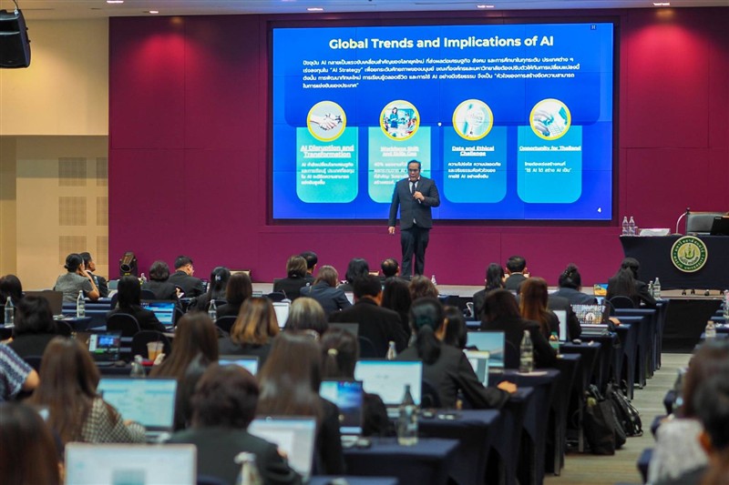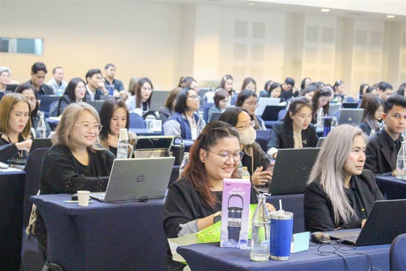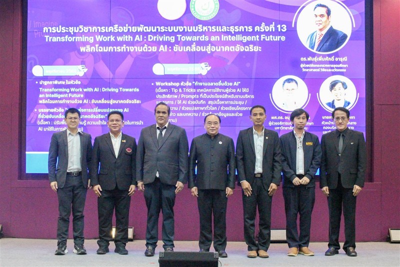 ในโอกาสนี้ ก่อนเริ่มกิจกรรม ผู้เข้าร่วมประชุมได้ร่วมยืนสงบนิ่ง เพื่อถวายความอาลัยแด่ สมเด็จพระนางเจ้าสิริกิติ์ พระบรมราชินีนาถ พระบรมราชชนนีพันปีหลวง พร้อมน้อมรำลึกในพระมหากรุณาธิคุณอันหาที่สุดมิได้ หลังจากนั้นได้ดำเนินกิจกรรมเปิดการประชุมวิชาการ ครั้งที่ 13 ซึ่งในปีนี้มีผู้เข้าร่วมอบรมประกอบด้วย บุคลากรสายสนับสนุนจาก 30 สถาบันการศึกษาทั่วประเทศ และเครือข่ายองค์กรปกครองส่วนท้องถิ่น จำนวน 179 คน เป็นกิจกรรม WORKSHOP ในหัวข้อ “พลังแห่งการเปลี่ยนแปลงของ AI ที่ช่วยขับเคลื่อนงานสู่อนาคตอัจฉริยะ” และ“ทำงานฉลาดขึ้นด้วย AI” เพื่อให้ผู้เข้ารับการอบรมได้มีความเข้าใจเกี่ยวกับบทบาทของ AI ในการพัฒนาองค์กรและปรับปรุงกระบวนการทำงาน ส่งเสริมการแลกเปลี่ยนความรู้ พัฒนาทักษะและความสามารถของบุคลากร โดยปัญญาประดิษฐ์ (AI) มีบทบาทสำคัญอย่างยิ่งต่อการเปลี่ยนแปลงรูปแบบการทำงานขององค์กรในทุกภาคส่วน การนำ AI มาประยุกต์ใช้จะช่วยเพิ่มประสิทธิภาพ ลดขั้นตอนที่ซ้ำซ้อน ยกระดับคุณภาพการให้บริการ และช่วยให้การทำงานมีความแม่นยำและมีความรวดเร็วยิ่งขึ้น รวมถึงกระทรวง อว.ออกแนวปฏิบัติใหม่เกี่ยวกับการสอนด้านปัญญาประดิษฐ์ (AI) ในระดับอุดมศึกษา พ.ศ. 2568 เพื่อยกระดับการพัฒนากำลังคนด้าน AI ตามนโยบายดิจิทัลของประเทศ พัฒนาแพลตฟอร์มการเรียนรู้ด้าน AI และนำไปประยุกต์ใช้ในกระบวนการทำงานในองค์กรหน่วยงานภาครัฐและเอกชน