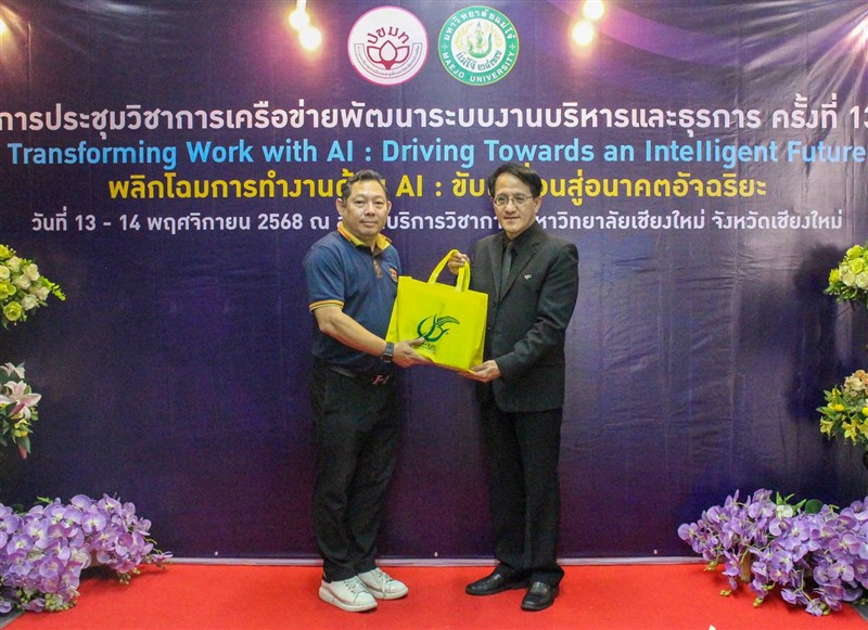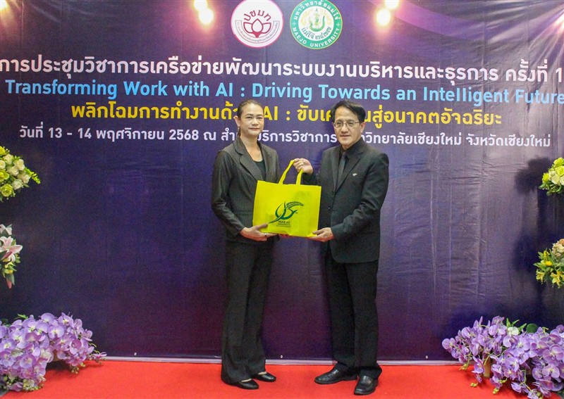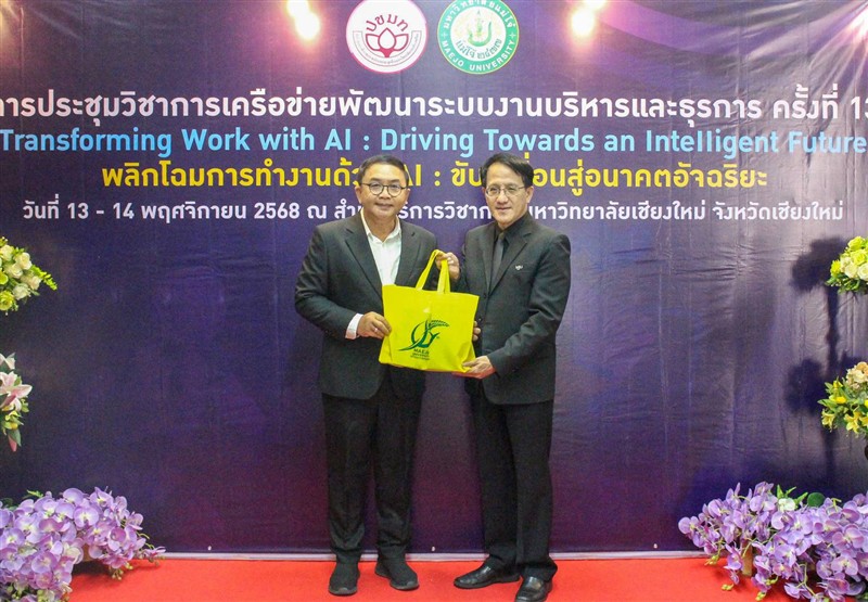 วันที่ 13 - 14 พฤศจิกายน 2568 กองกลาง มหาวิทยาลัยแม่โจ้ ร่วมกับ เครือข่ายพัฒนาระบบงานบริหารและธุรการ ที่ประชุมสภาข้าราชการ พนักงาน และลูกจ้าง มหาวิทยาลัยแห่งประเทศไทยเป็นเจ้าภาพการจัดประชุมวิชาการเครือข่ายพัฒนาระบบงานบริหารและธุรการ ครั้งที่ 13 หัวข้อ "Transforming Work with AI: Driving Towards an Intelligent Future" “พลิกโฉมการทำงานด้วย AI: ขับเคลื่อนสู่อนาคตอัจฉริยะ” โดยได้รับเกียรติจาก ดร.พันธุ์เพิ่มศักดิ์ อารุณี ผู้ช่วยปลัดกระทรวง กระทรวงการอุดมศึกษา